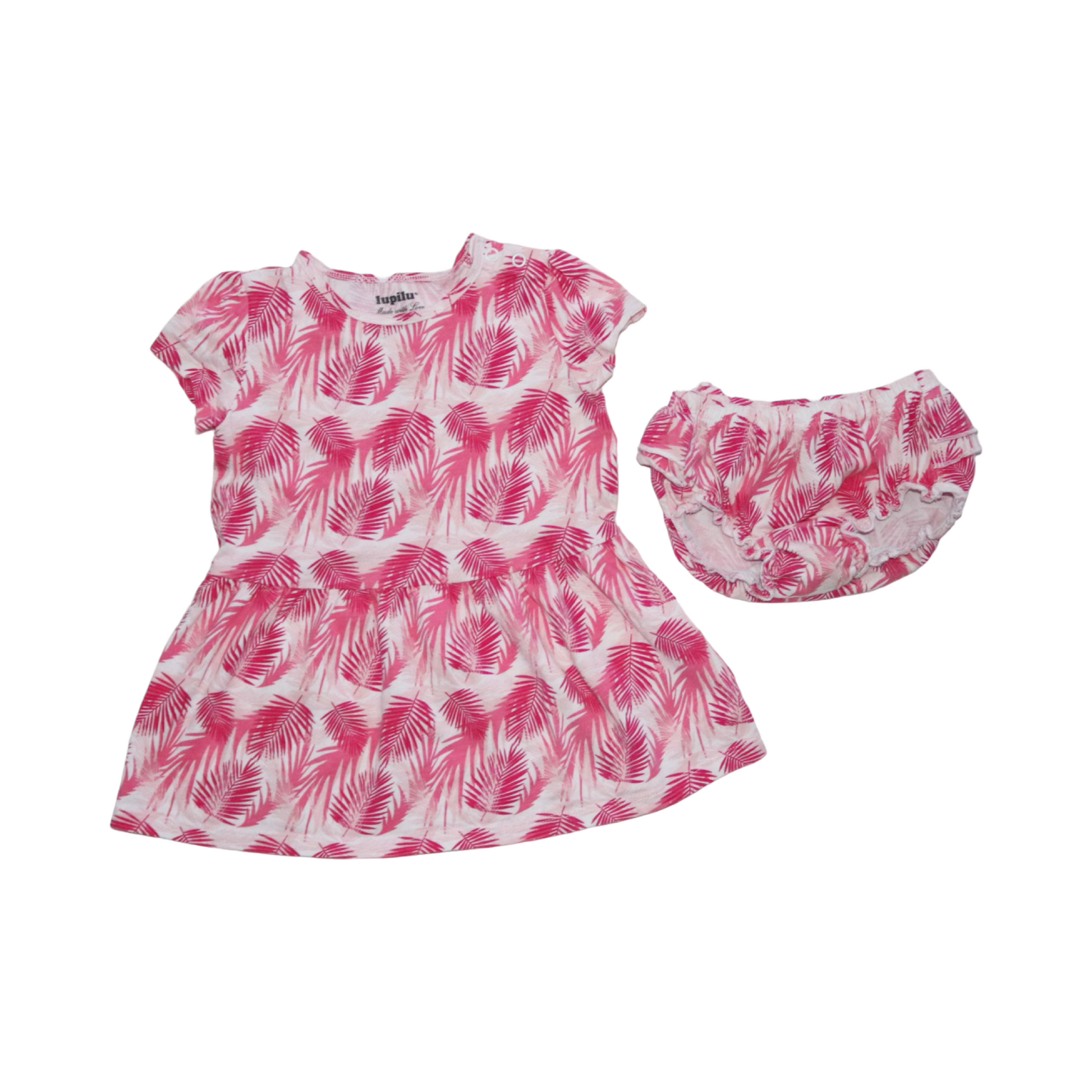 Kortärmad Klänning & Trosor Matchande Set från lupilu - Storlek 86/92 - Rosa & Vit