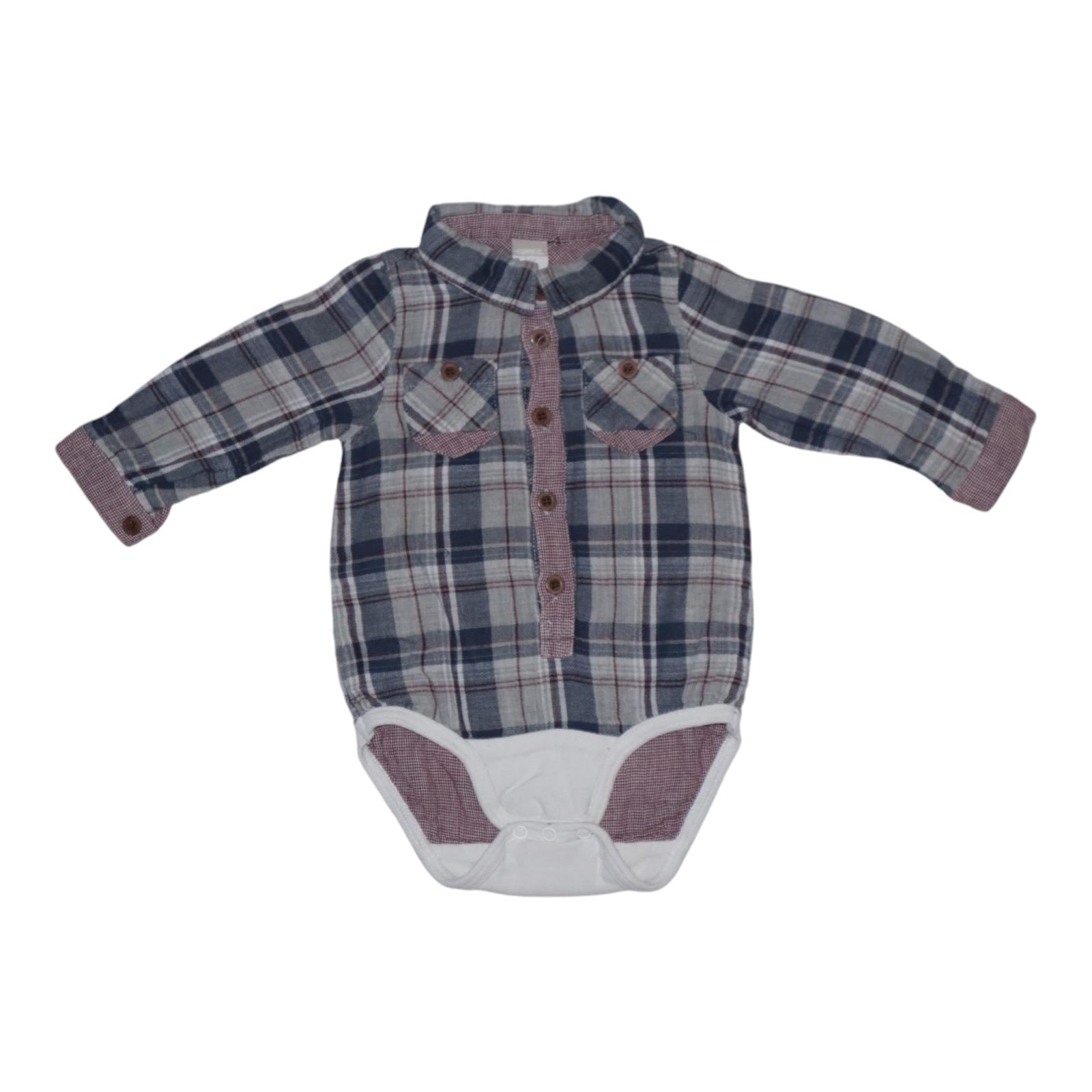 Långärmad Skjorta med inbyggd Body från name it - Storlek 62 - Blå & Rödbrun