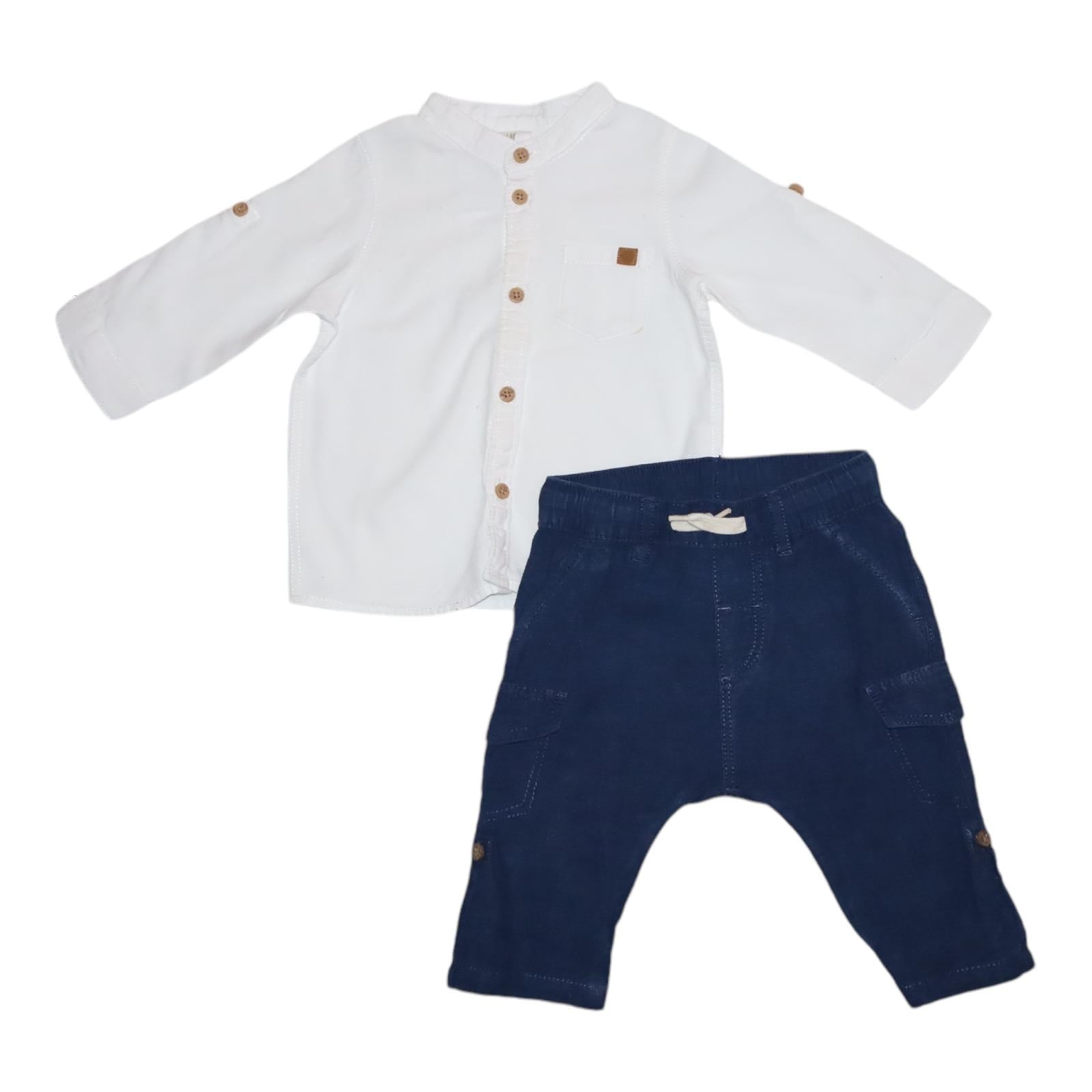 Långärmad Skjorta & Tunna Byxor Matchande set från H&M - Storlek 68 - Blå & Benvit