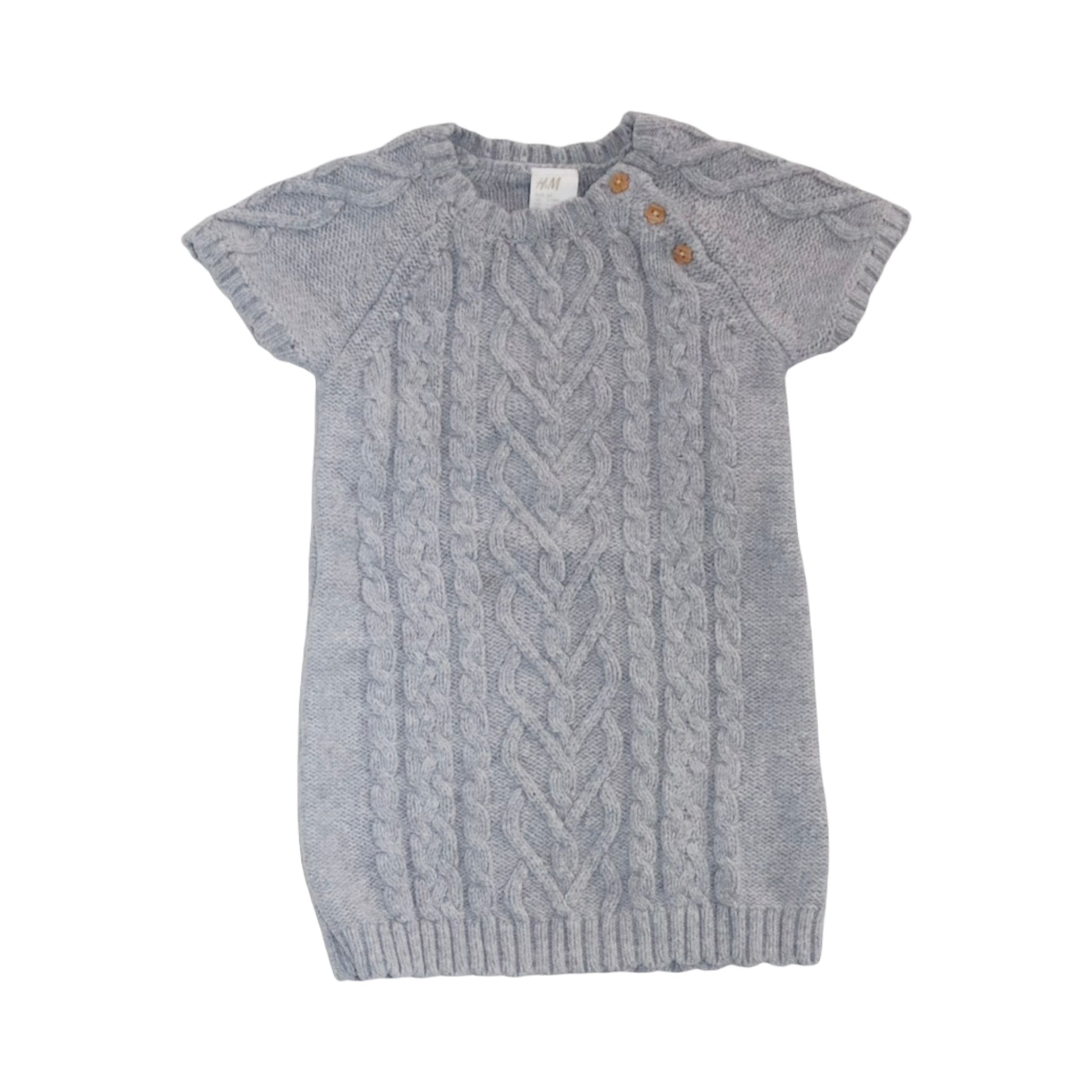 Stickad Kortärmad Klänning från H&M - Storlek 80 - Grå